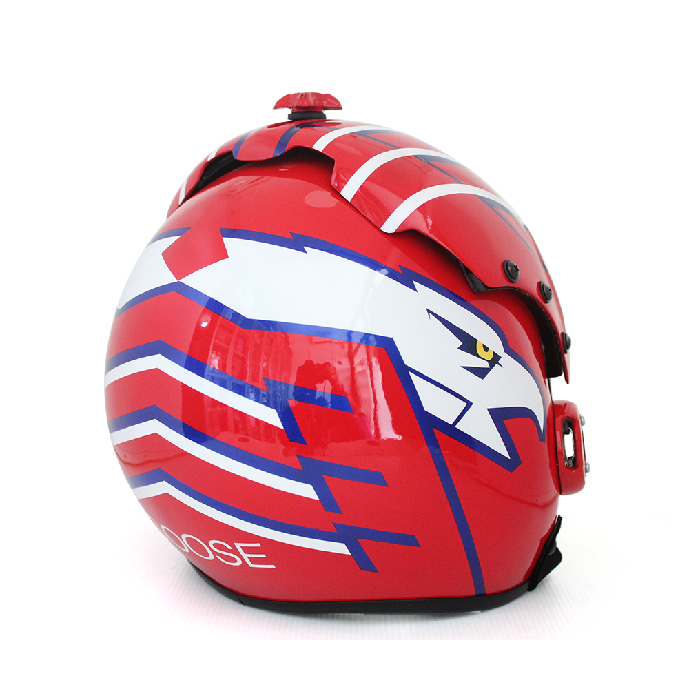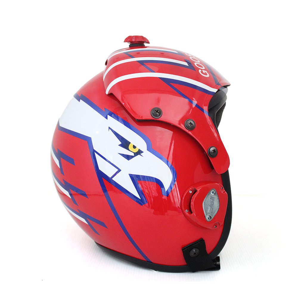 • The helmet has an oxygen mask hook receiver (mechanical) on both insides home receiver.